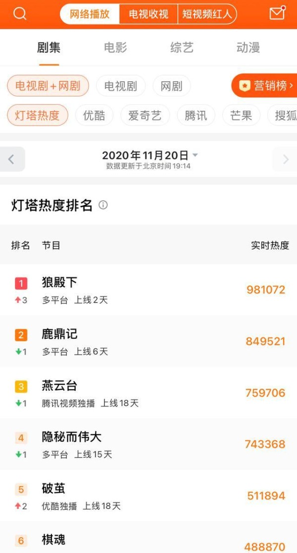 艺人活跃粉丝数周榜,肖战第一李沁挤进前五,《狼殿下》助推明显