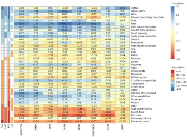 在这里,研究人员证明,坚持健康饮食通常与较低的重大慢性疾病风险相关。该研究发现与慢性病之间负相关最强的食物是咖啡、全谷物、红酒,而正相关最强的食物是加工肉类、低能量饮料、红肉、炸薯条、高能量饮料。低胰岛素、低炎症或降低糖尿病风险饮食的参与者在综合和个体中发生严重心血管疾病(CVD)、2型糖尿病和癌症的风险降低最大。在不同性别和不同种族的人群中也发现了类似的结果。该研究结果表明,与胰岛素血症、炎症和糖尿病发展相关的饮食模式可能为未来预防慢性疾病的饮食指南提供信息。