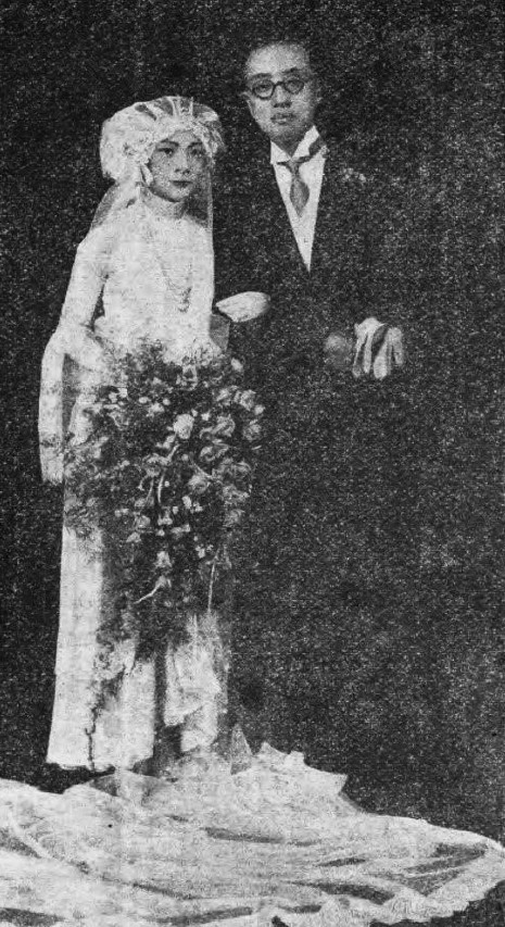 仪式结束后的喜宴上,唐瑛穿着上袄下裙的中式礼服。这种穿法沿用至今——当代的新人在婚礼仪式上多着西式婚纱,在晚宴时则穿中式礼服。
