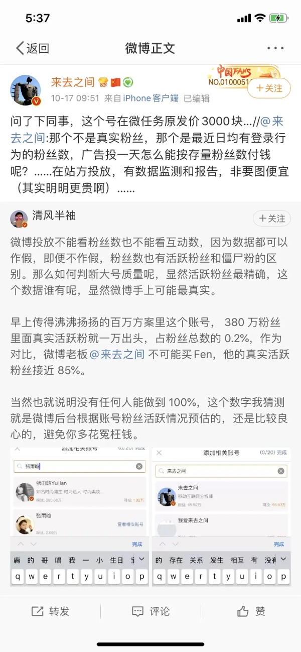 起因是一个大v发了这个微博,那个网红不重要,重要是我们知道了微博投放有他自己判断“活跃粉丝”的一套算法。那么根据微博推广这个方式,我们就可以大致了解各个明星的“活跃粉丝”大致数量,也就是能得到微博粉丝相对脱水一点的数据。