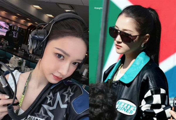 关晓彤机车皮衣飒挥F1格子旗,成中国首位明星女旗手