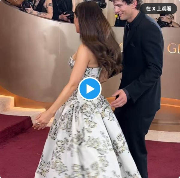 阿什顿·库彻和米拉·库尼斯走上#金球奖红毯
