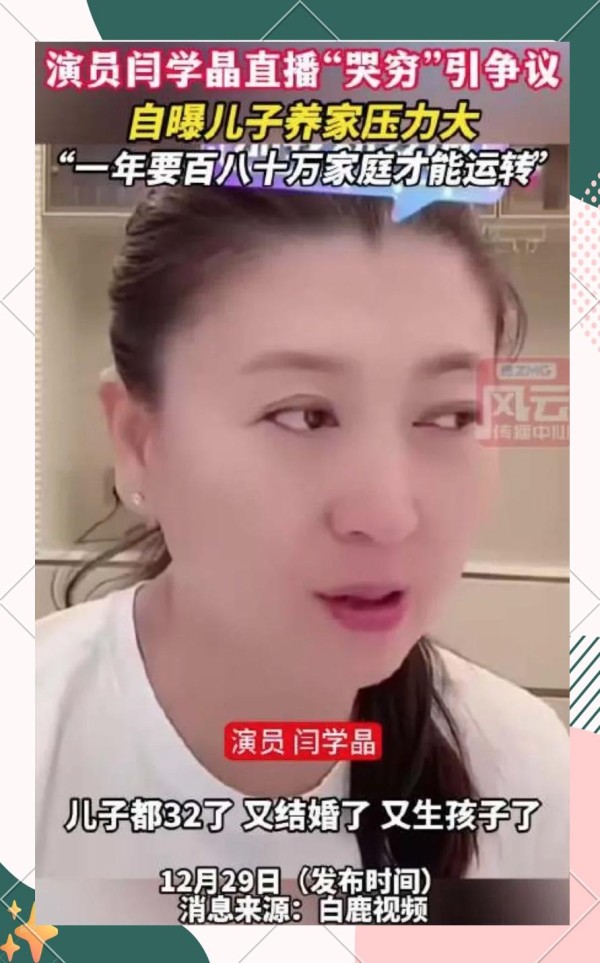 演员闫学晶在直播中坦言, 儿子林傲霏作为演员,年收入大约二三十万,而儿媳妇作为音乐剧演员,年收入甚至不到十万。然而, 闫学晶却指出,为了维持家庭的正常运转,年收入至少需要达到百八十万。此言一出,立刻在评论区引起了轩然大波。许多网友惊讶地发现,自己一年的收入可能还不足以支撑明星家庭的日常开销。