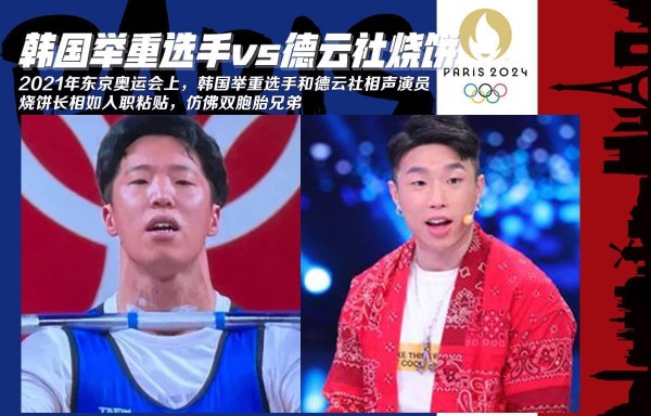 这种"撞脸"现象并非新鲜事。早在2016年里约奥运会上,中国游泳选手余贺新就被发现与港星陈伟霆神似。两人不仅五官相似,连身材和气质都如出一辙,难怪网友直呼"果然是亲兄弟"。2021年东京奥运会上,韩国举重选手与相声演员烧饼的相似度也引发热议,连本人都不由自主地出来辟谣,"我真的没去参加奥运会。"