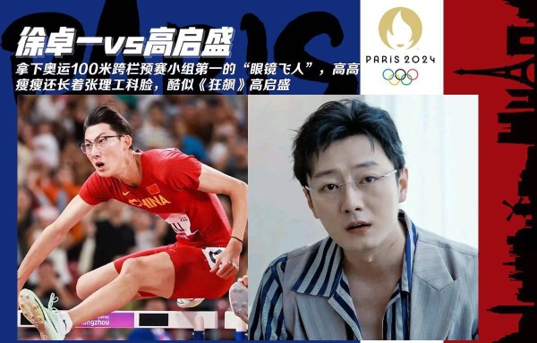 田径场上也出现了"撞脸"佳作。来自中国大陆的"眼镜飞人"徐卓一,凭借出色的百米跨栏成绩引起关注,而他清秀斯文的气质又令人联想到电视剧《狂飙》中的高启盛。网友调侃他"不像来参加奥运,更像是去参加奥林匹克数学竞赛"。