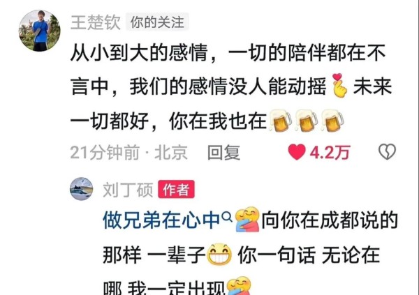 王楚钦、陈梦等主力纷纷留言,表达对刘丁硕的支持与祝福,这种团队间深厚的情谊让人动容。