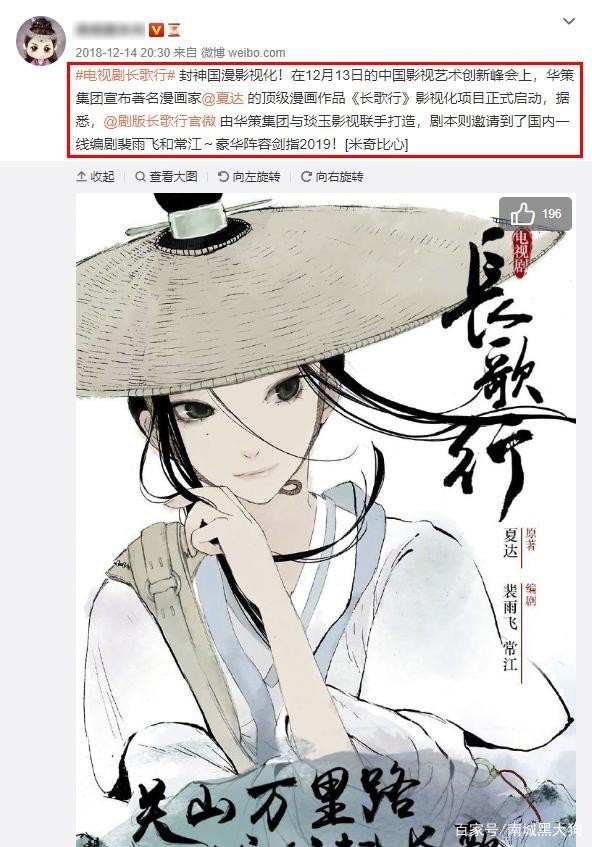 早在中国影视艺术创新峰会上,华策就宣布了《长歌行》漫画的影视发布会,经过一年半的选角和准备,发射仪式终于在举行,迪丽热巴、吴磊开始拍摄。