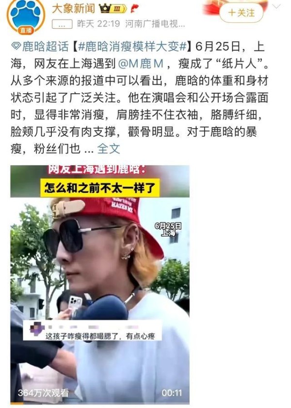 这事儿闹得沸沸扬扬,说到底,焦点就一个:鹿晗太瘦了,瘦到引发了全民健康焦虑。围绕他瘦的解读,像一面多棱镜,折射出太多东西:**