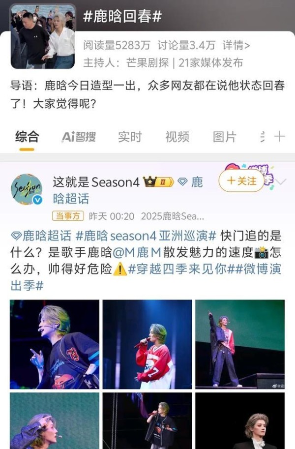 这边厢猜测满天飞,“回春”这个词倒是意外地在某些角落冒头。有人翻看他前阵子的照片,说“精修图看着气色还行啊”、“造型给力,感觉颜值回春了”。讲真,除了瘦这一点扎眼得让人无法忽视,鹿晗的舞台表现力、唱跳水准,确实还是那个味儿,火力全开,台风稳得很。那股子舞台魅力,没丢!**