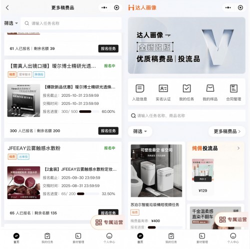 愿景“达人画像”系统整合了原创素材生成、KOC分发和打品团队,可提供从分镜到成片、从挂车到投流、从短视频到直播的专业营销服务,帮助品牌和达人高效匹配,告别传统“广撒网”式的低效撮合,提升合作效率与营销转化。目前,系统已入驻达人超12000人,入驻商家超3000家,KOC素材过万条,并已提报多项软著及数字技术专利。