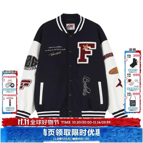 每当春风拂面,总想为衣橱添置几件既保暖又时髦的外套。F426这款明星同款撞色棒球服,完美诠释了国潮设计的精髓。不同于传统棒球服的单调,它采用高级毛巾绣工艺,在蓝色与藏青色的撞色基底上,绣制出立体的图案纹理,远看有层次,近看有细节。