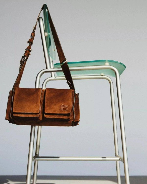 在配色上, Utilitaire 选择了深棕与可可棕等经典大地色调。这种看似低调的颜色,其实最考验设计的功力。它不是为了瞬间抢风头,而是为了“长情”的视觉稳定感——无论是配复古丹宁、白衬衫,还是温柔的连衣裙,它都能完美融入,为整体造型增添一份沉稳。更绝的是,高级麂皮材质在日常使用中会慢慢形成独属的细腻纹理,色泽层次会越来越丰富。这种经得起时间考验的美学,正是 Miu Miu 一直传达的时尚态度。