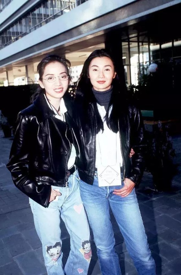 梅艳芳和张曼玉都是让人感到非常惊艳的美女,两人不但颜值高,演技也非常好,私底下二人的关系也不错,这俩人本身都是非常酷的人,穿搭方面也是这种酷酷的风格,一身黑色的皮衣加上白色的内搭再配上水洗的牛仔裤,有股浓浓的摇滚范