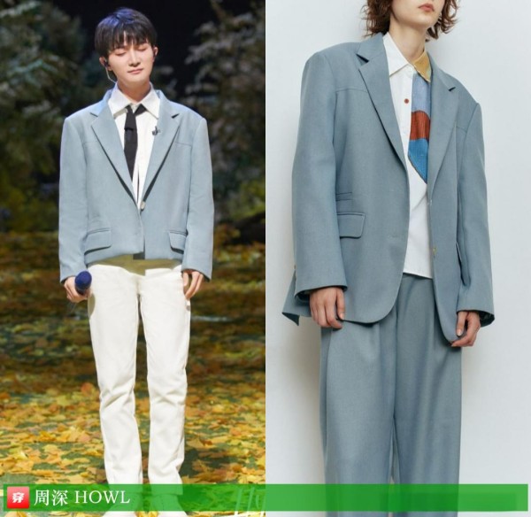 612 潮盛典上,Stella McCartney 的蓝色牛仔连体裤让周深首次挑战“无腰封”长裤,裤管自带褶皱像海浪;稍后《夏日毕业歌会》,Luminous 的牛仔拼接白色西装套装又让他把“硬朗”与“清爽”同时拉满——牛仔不是街牌专属,也可以走进正式舞台。
