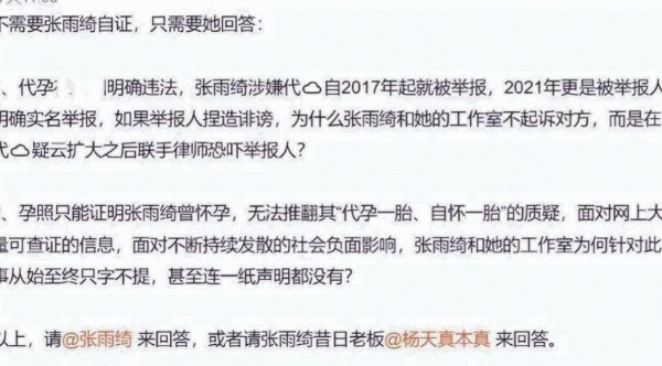 需要强调的是,关于代孕的说法目前尚无司法机关定性,属于舆论层面的实名举报