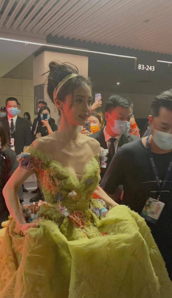 作为在红毯上从不失手的绝对王者,Angelababy今晚选择的是黄绿色裹身材森系长裙,这是Elie Saab最新高级定制系列,绿色的发饰搭配十分相宜。