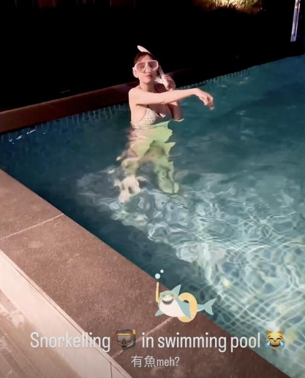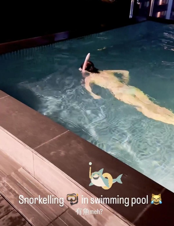 可以看出,在游泳池里的陈乔恩心情好极了,不停地游来游去,就像一条美人鱼,而老公Alan更是把这一切记录下来,可见她多么喜欢陈乔恩。