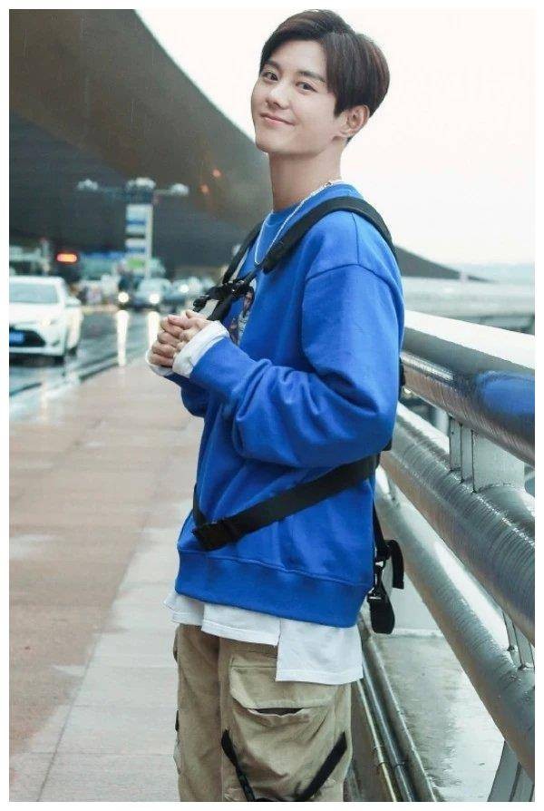 蓝博穿上蓝色上衣,其实综艺咖的他,也可以帅气得像模特!