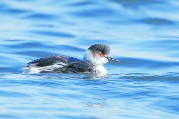 与楔尾伯劳同样算得上娇客的是在杏林湾发现的黑颈鸊鷉(pìtī),这种中型水鸟红眼黑嘴,长得非常有个性,被称为“名字最难认的鸟”。黑颈鸊鷉已被列入《世界自然保护联盟(IUCN)濒危物种红色名录》,往年在厦门较为少见,今年却意外地“亲民”,屡屡现身人前,引来不少鸟友蹲守拍摄。