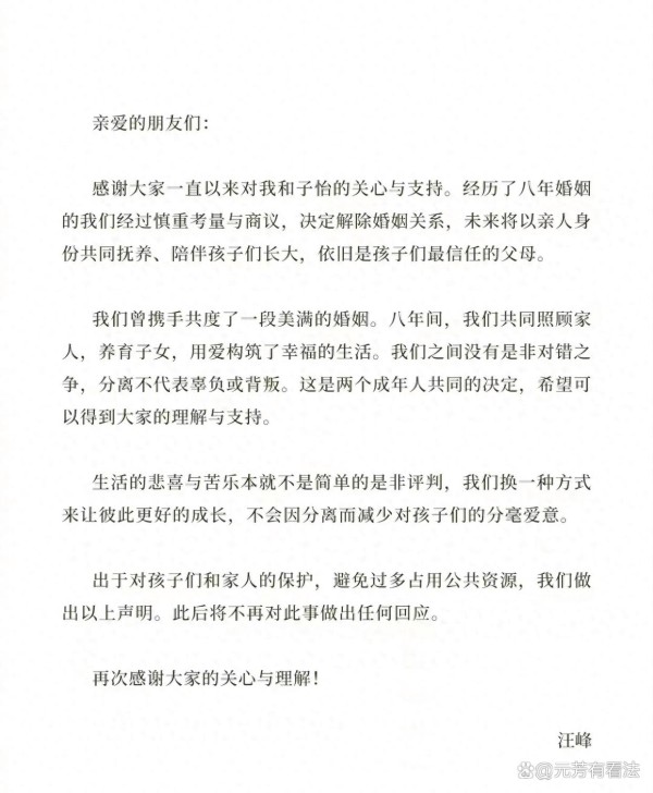 章子怡汪峰承认离婚:他们这段“不匹配”的婚姻,到头了