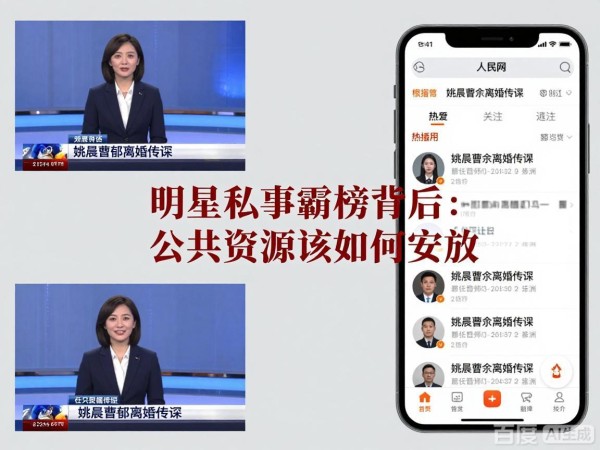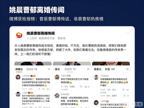 2026年3月中旬,演员姚晨与曹郁的离婚相关话题引爆全网,相关词条迅速霸占各大社交平台热搜榜首,3月23日人民网发布评论文章,直指此类明星私事滥用“官宣”、占用公共资源的乱象,这场由私人婚恋引发的舆论狂欢,再次把明星流量与公共舆论的矛盾推到台前。