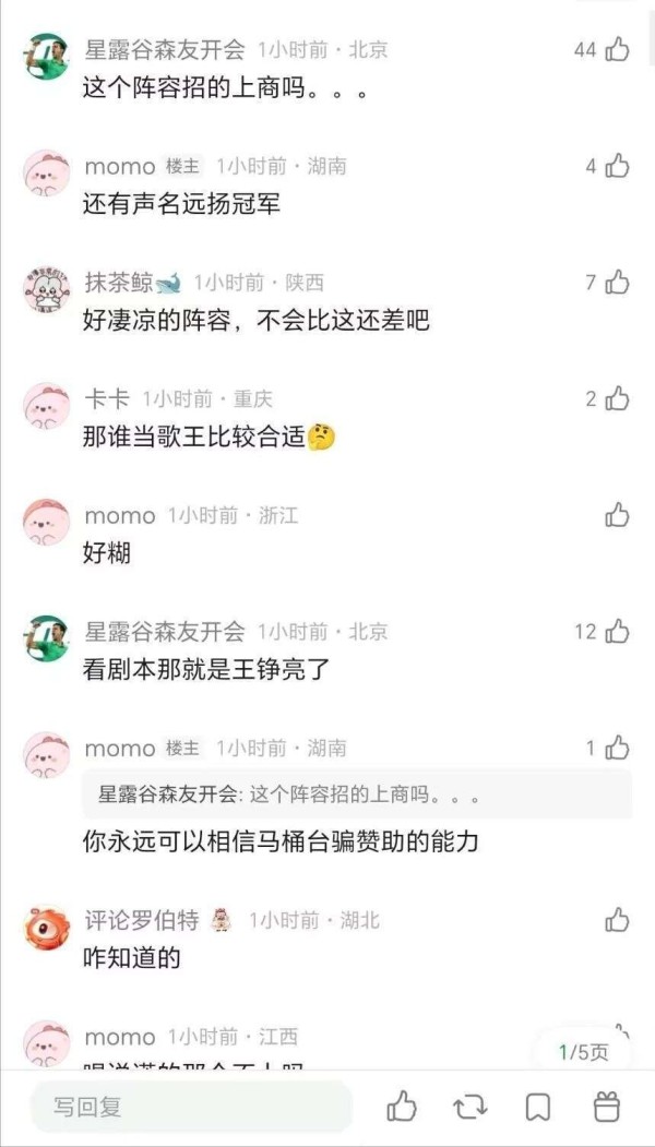 面对这样的阵容,网友们纷纷发问:现在还有哪位一线歌手愿意连续十二期奔赴直播现场?这话语间,既有对阵容深度的失落,也隐含了对节目商业可持续性的担忧。回顾《歌手》系列的发展历程,我们不难发现,这档节目始终将强大阵容+高规格制作作为其核心竞争力。从最初的羽泉组合,到黄绮珊的爆发式崛起,再到韩红、李玟、国际天后Jessie J的强势加盟,再到华晨宇等新生代领军人物,每一季至少都会有两到三位足以引爆收视与热度的明星歌手。正因为如此,观众们早已将顶级阵容视作《歌手》的默认标准。如今当爆料中的名单缺乏了顶流视帝级歌手破圈常客等词汇时,舆论的震荡便成了必然反应。有网友开玩笑说:这个阵容能拉来多少赞助?你永远低估不了某卫视在招商文案中的想象力。尽管这些话语充满调侃,却也真实反映了公众对节目资源配置与市场反响之间错位的深切关注。越是琢磨这份名单,越发觉得其可信度相对较高:虽然没有现象级的流量明星,也没有超一线的大咖,但每一位歌手都有着稳定的粉丝基础和一定的主流媒体曝光度。