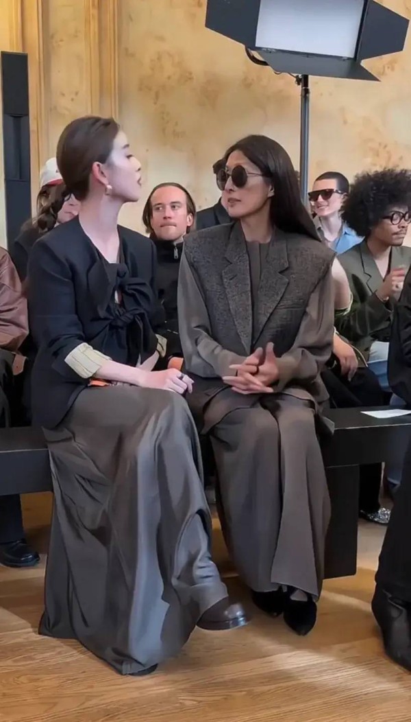 她英语好,很流利,跟那些超模们,聊天没障碍,这是她,海外读书,学来的,多有用,她的表情,很有意思,大家看得清,超模们,聊得热烈,把她略过,她眼神里,一瞬间,有点不屑,或者说,有点睥睨,很快地,又恢复了,很得体,这种事,高端社交,她观察敏锐,自我调整快,还有呢,她那种,想掌控的,藏在心里,不轻易露,她偶尔会笑,笑得开心,但是呢,她会有节制,形象管理,做得好,她不是玩玩,她是认真的,看秀的时候,很仔细,还拍照,关注设计师,她学时尚,很用心,她想,要努力,和老公,并肩站,不是他的,附属品,她追求自己,很有想法,很独立。