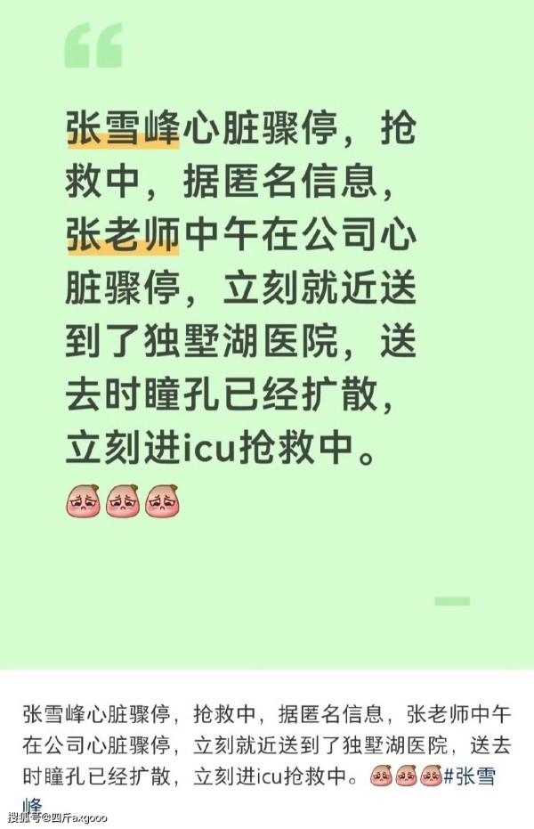 网上的消息,是在3月24号中午12点26分,他在公司跑步后突然感到不适,被紧急送到医院抢救。