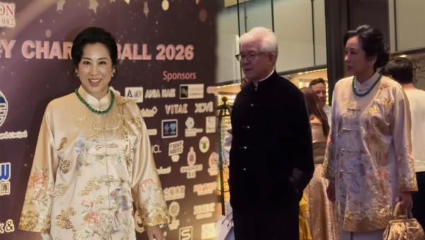 老牌港姐朱玲玲参加慈善晚宴,戴帝王绿翡翠雍容华贵,大十岁老公满头白发