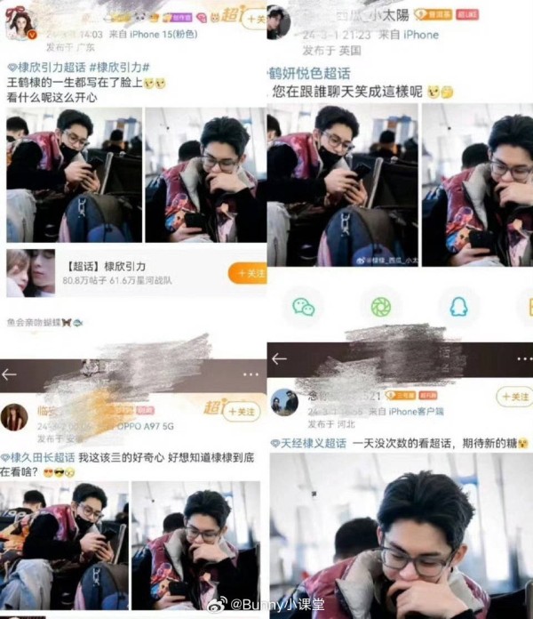 可是这组图却让其他女明星的粉丝惦记上了,这些粉丝分布于国内国外,其中虞书欣的粉丝写道:王鹤棣的一生都写在脸上。白鹿的粉丝远在英国问道:您在跟谁聊天笑成这样?田曦薇粉丝则好奇:好想知道棣棣在看啥?孟子义粉丝感叹:期待新的糖。