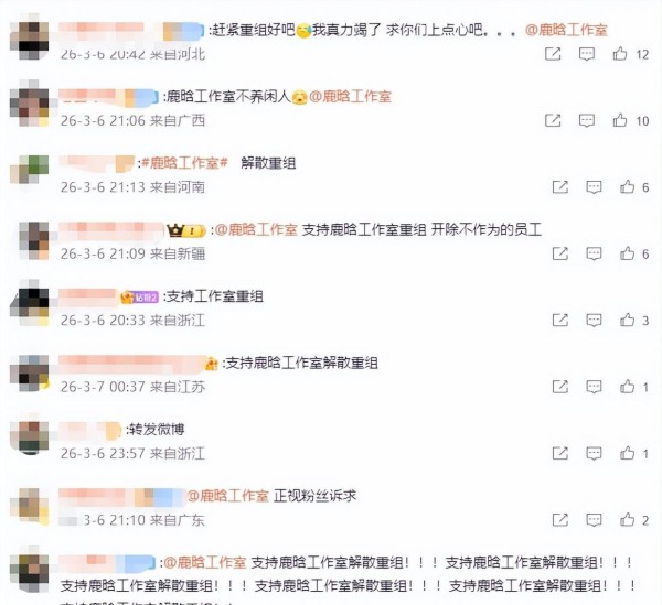 之后,不清楚通过什么途径加入了小鹿工作室,一呆就是至今。粉丝们纷纷提出建议,希望能够对工作室进行重组。