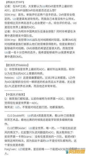 各明星选手对于Uzi的评价