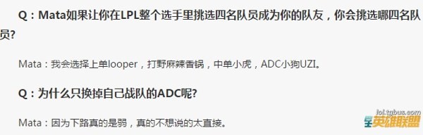 Mata在季中赛被淘汰之后,采访中表达了想与Uzi搭档的意愿
