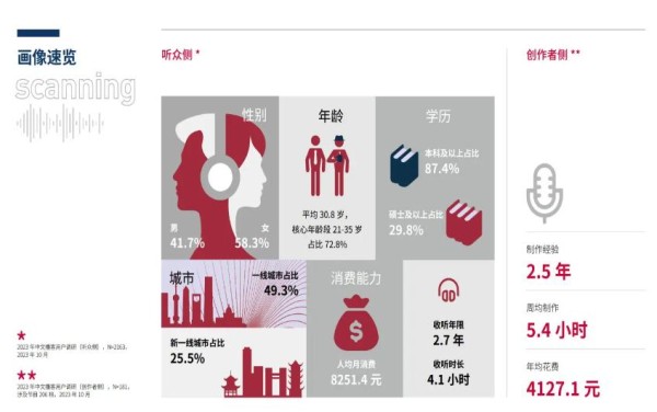 市场上不乏在赛道上坚持的选手,经过几年的沉淀,中文播客也有了相对固定的用户群,《2024播客营销白皮书:播客,不断成长的可能性》调研数据显示,播客用户的平均年龄30.8岁,年龄21-35岁的用户占比达72.8%。本科以上学历的人群占比达87.4%,一线城市占比49.3%⋯⋯年轻、高认知、重消费,这无疑是播客商业价值的最好例证。
