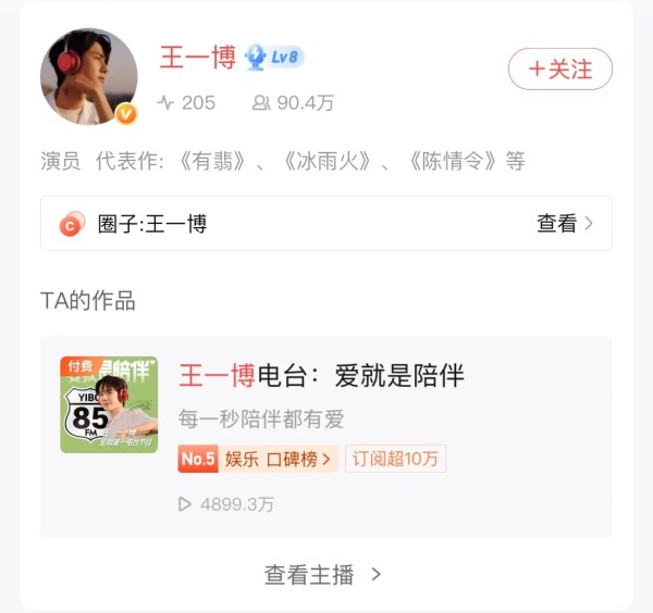 王一博在喜马拉雅上已累积超过90万粉丝。 图片来源:喜马拉雅