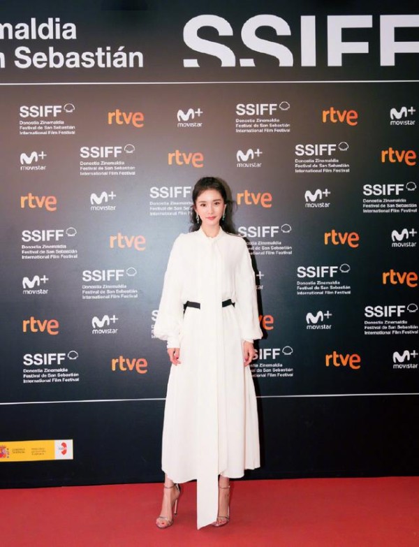杨幂亮相圣塞巴斯蒂安电影节红毯,一袭白裙似古装女神却展现代美