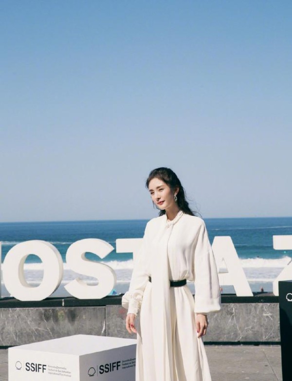 在首映礼前,杨幂踏上圣塞巴斯蒂安国际电影节红毯,一身白裙显高挑身材,腰部系着一根黑色腰带,整体造型宛如古装女神。不过,杨幂身上又透着一股现代感,尤其是身边的现代化环境,可以说是古装范儿展现出现代美。除此之外,杨幂在还百年沙滩还拍摄了外景照,以大海为背景,女神范儿十足。
