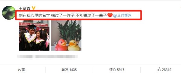 从王彦霖的创意文案中也可以看出,王彦霖还是非常喜欢艾佳妮的,很多粉丝都觉得这对情侣确实很甜美,而且王彦霖还晒出了他们大学时的合照照片。