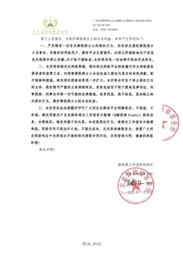 本来这种言论若只是口头上的空谈也无关紧要,但接下来局势急转直下。部分人利用AI技术制造了恶意视频,并通过网络大肆传播,指责薛凯琪,甚至误导公众舆论,严重影响了她的名誉。起初,薛凯琪一方选择忍气吞声,但最终,舆论的压力和损失逼得她采取了法律手段,向散布谣言的人发出了律师函,要求停止侵权。