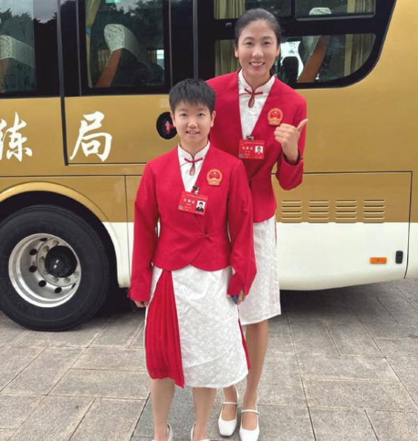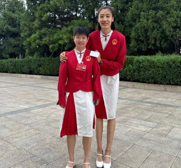众多中国女排队员出席了此次总结大会,身高1米93的高意刚下车就迫不及待与孙颖莎合影。她弯着身体与孙颖莎同框,面带笑容,竖起大拇指,似乎与偶像合影是一种荣幸。另一位女排队员王媛媛身高更是达到1米95,也亲切地躬身与孙颖莎合影。