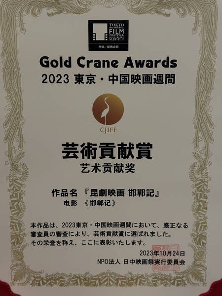 第36届东京国际电影节·中国电影周昨天在东京朝日新闻纪念馆举行了盛大的颁奖仪式,上海昆剧团拍摄的全国首部8K全景声昆剧电影《邯郸记》荣获艺术贡献奖·金鹤奖。