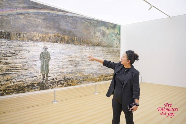 安塞姆·基弗是德国新表现主义的代表人物之一,他的大幅绘画作品《彩虹》是展览的亮点。彩虹的长弧划过灰色的天迹,彩虹下行人的背影给观众留下无穷的想象空间。自作曲《彩虹》和这幅画的巧妙联系,正是周杰伦收藏的契机。