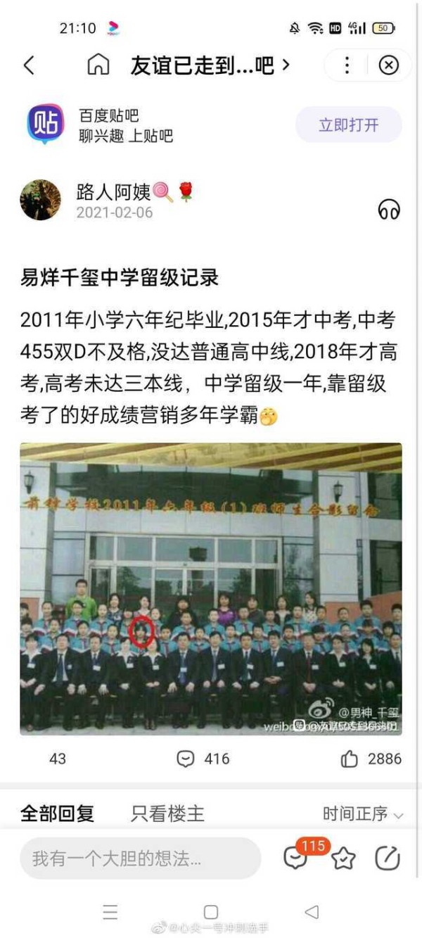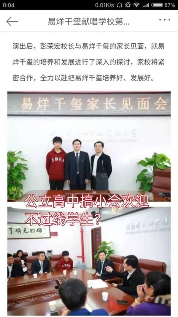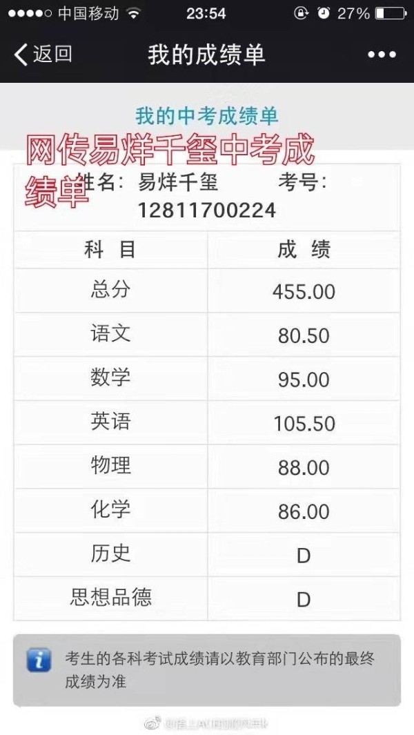 易烊千玺真实的中考分数455双D未过高中录取线,不在学校特长生公示名单。最后却入读划线A的市重点名校,还得到了校长、领导单独召开个人家长见面会大屏幕欢迎的特殊待遇,这排面只能说是配得上易烊千玺大明星的身份。