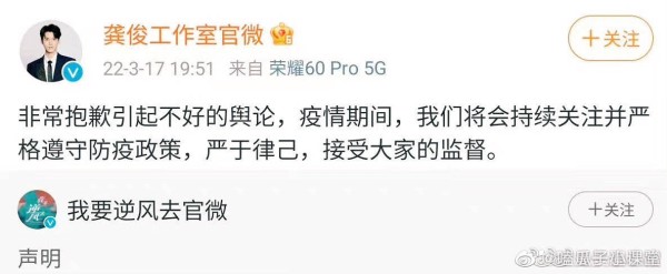 除此之外剧组声明压根不承认堂食,龚俊和钟楚曦的道歉也毫无诚意避重就轻转移话题,两个工作室连发个声明都一模一样,标点符号都懒得改动一下。