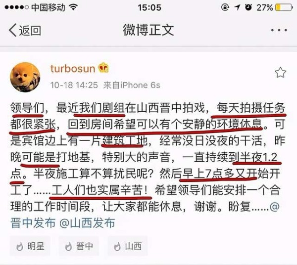 其实明星的特权并不是近期才被讨论的。孙俪早年间住酒店的时候,就发微博称酒店外的施工吵到了她休息。而据网友曝料,孙俪所称的噪音实际上是轻轨工程,而且是有夜间施工的许可证的。大家都要忍受这个声音,凭什么孙俪住在五星级酒店里,还想要求市政工程因为她一句话就停下来?这难道不是认为自己有特权,才敢发出这种说辞?