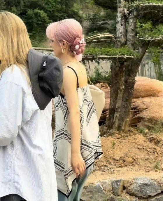 赵丽颖公园闲逛被偶遇,粉色丸子头俏皮可爱,侧颜美得令人心动