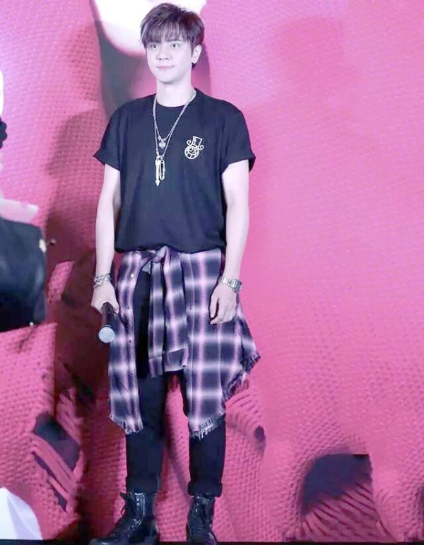 罗志祥身着一身简洁的黑色装扮,竟也显得分外帅气。由此可见,颜值高的人无论穿什么都更显魅力。他仅需稍作搭配上的改变,便能呈现出截然不同的风采。相较于休闲哈伦裤,罗志祥所穿的这条修身黑色长裤更显酷帅气质。他在腰间系上一件红黑色格纹衬衫,进一步提升了时尚感。然而,穿上高帮马丁靴并卷起裤脚的他,由于衬衫过长盖过了膝盖,整体造型略显杂乱,腿部比例并未得到很好的展现。