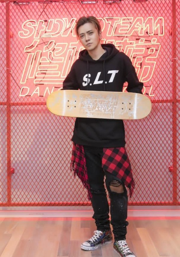 他的脚上穿了一双涂鸦高帮帆布鞋,鞋子上有各种图案的涂鸦,甚至还有水彩笔画的画,罗志祥这一身穿搭,简直酷到不行!