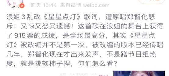 在2022年7月3日晚,郑智化本人在微博上对这一改编行为表达了强烈的震惊、愤怒和遗憾。在本主发声后,大家普遍预期节目组会作出回应或道歉,以平息此事。然而,节目组对此保持沉默,未作出任何回应。在网络上,该综艺节目的忠实观众以及女明星的粉丝们开始表达对节目和女明星们的支持,甚至出现指责郑智化蹭热度、欺软怕硬等言论。