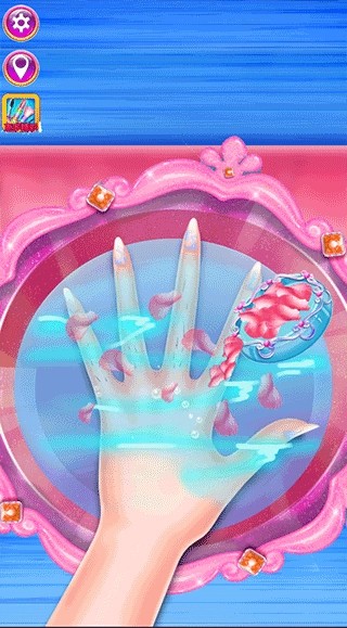 给她修指甲,每个指甲都可以设计不同的颜色和配饰。